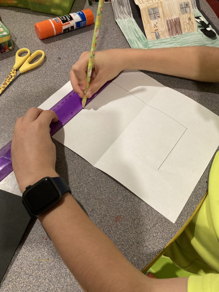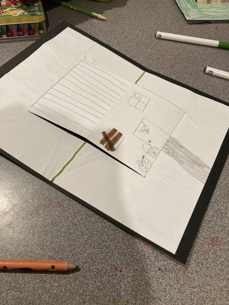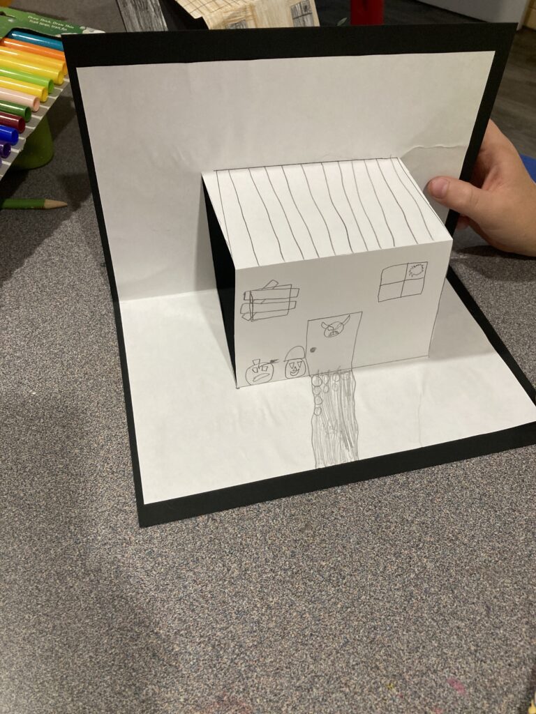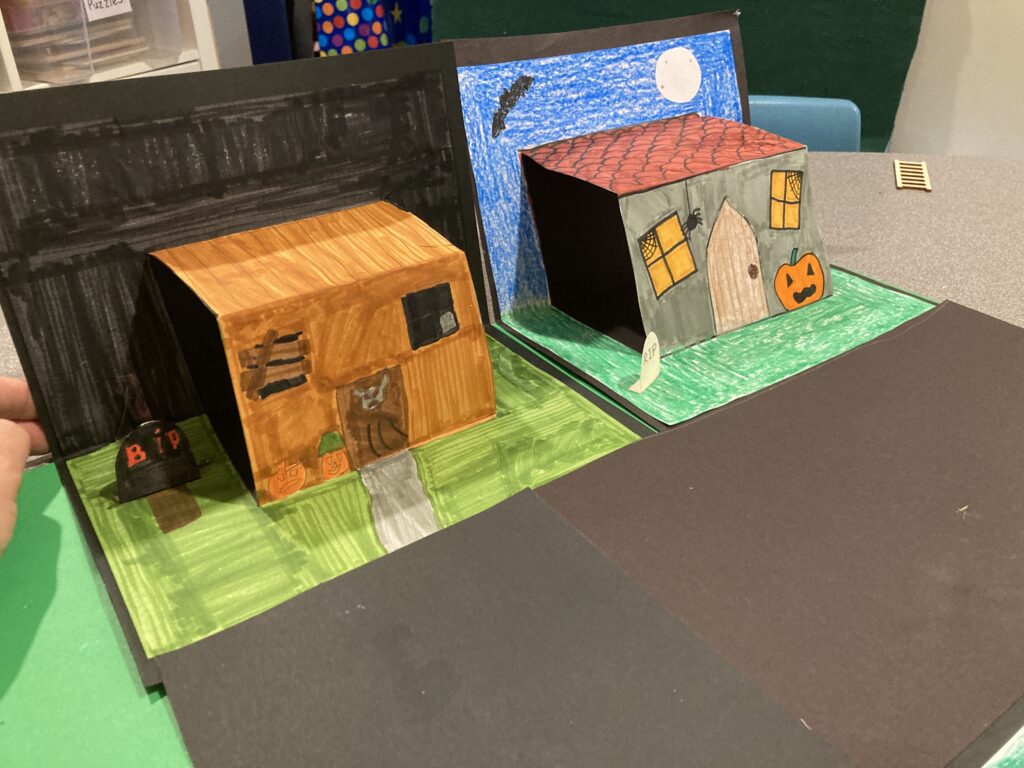However older kids will go to town creating their houses. My son ended up making our houses into a haunted village and stuck them all on some poster board.