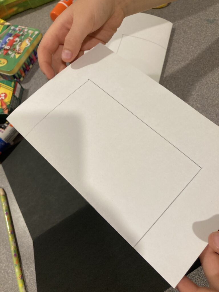 Putting your house together is a step by step guide. You can always add extra details at the end. Start by drawing a rectangle shape on your white paper as shown in the pics.
