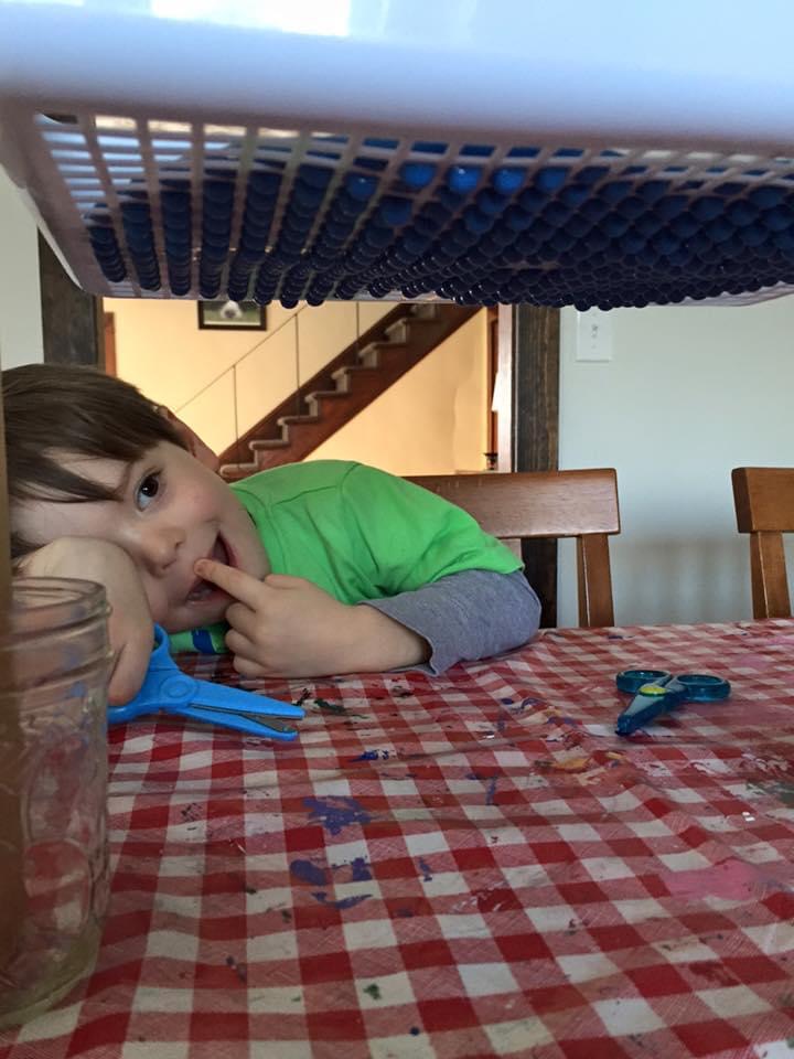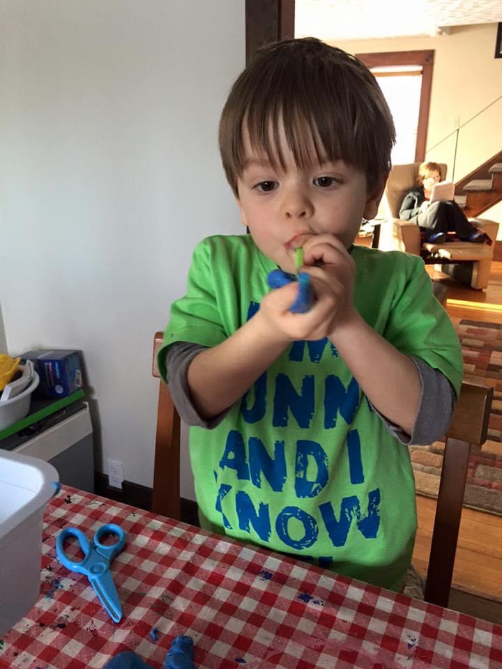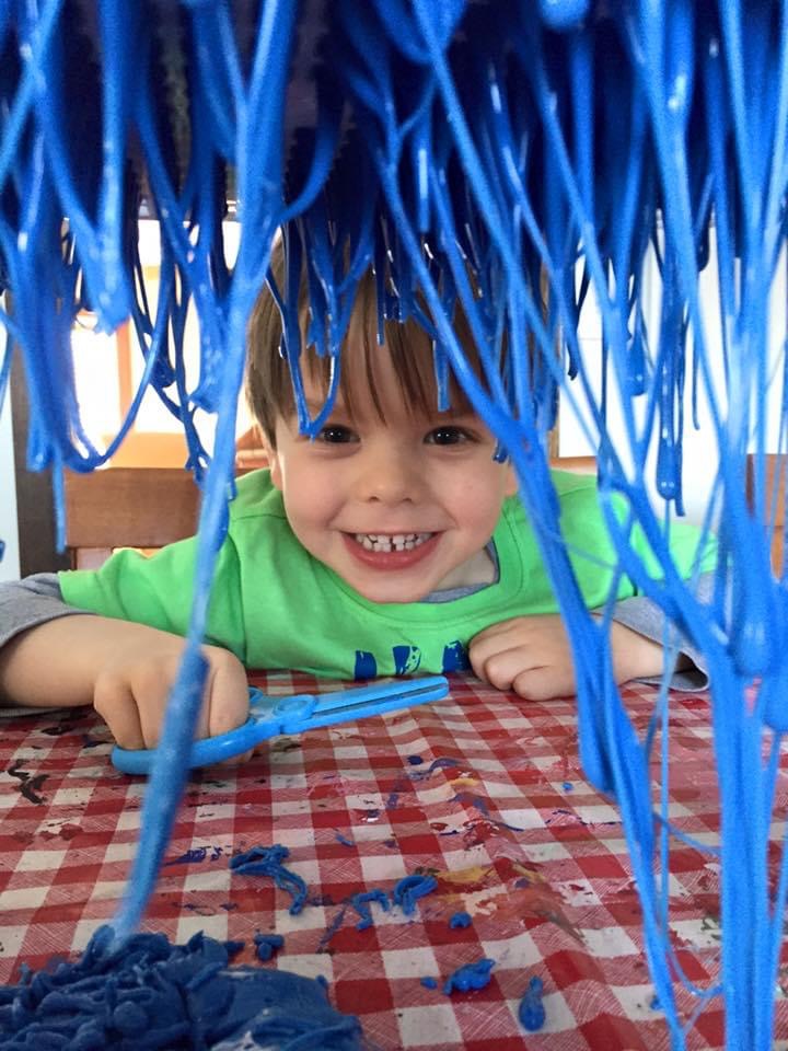 My son grabbed some scissors and started cutting the ‘ribbons’ of slime as they fell to the table. It was mesmerizing to watch.