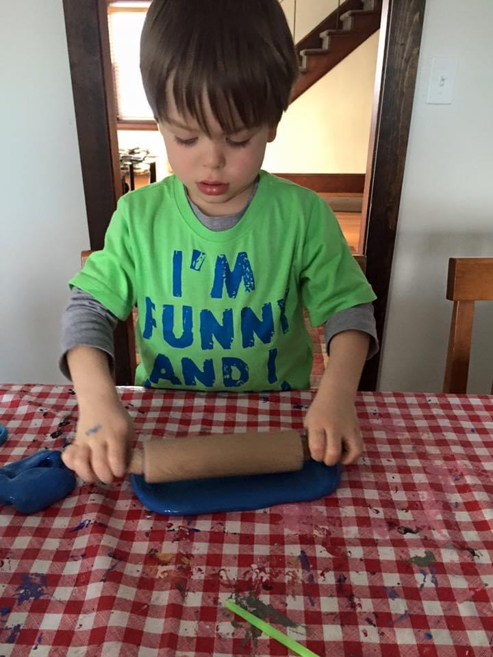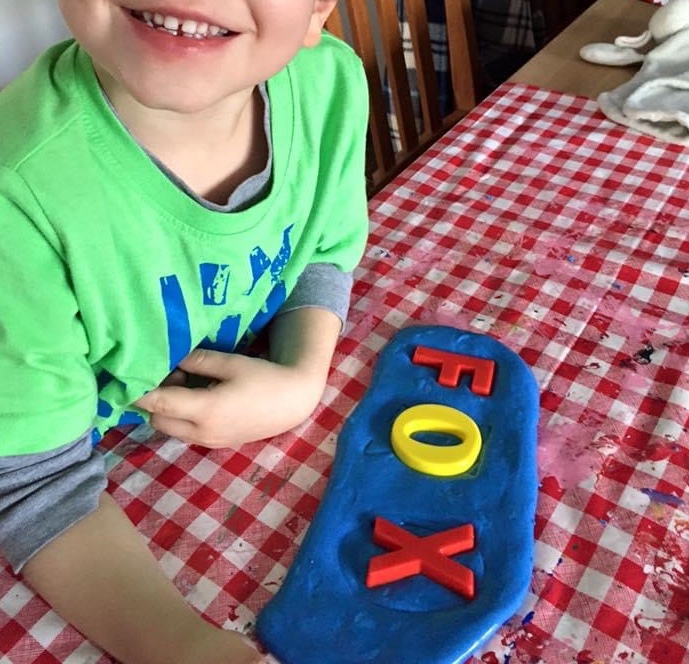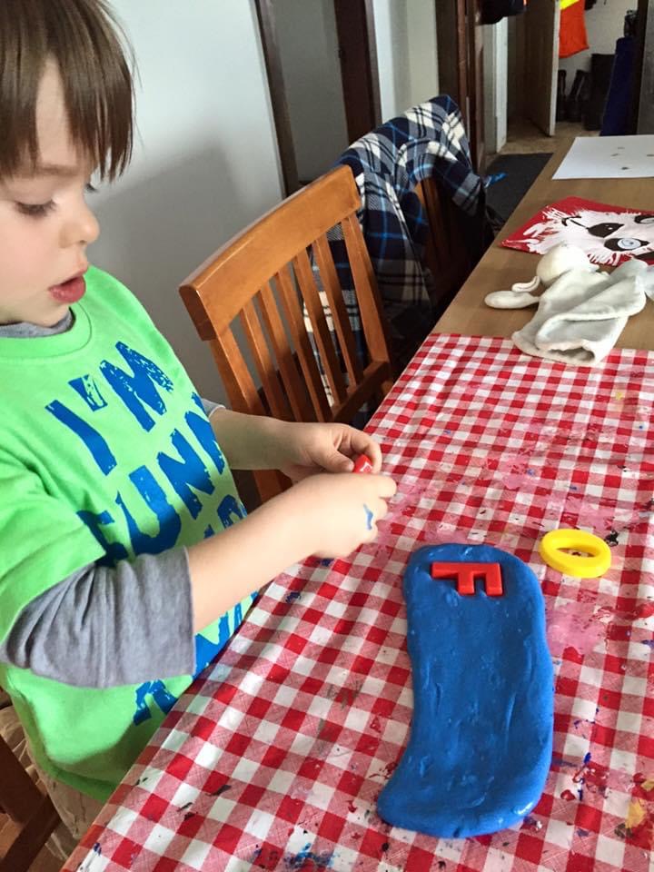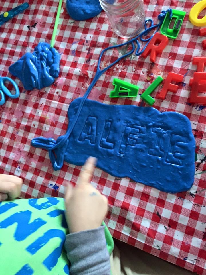 Once you’ve made ribbons and blew bubbles, your bubble blowing slime is good to play with. I provided my son with some plastic letters and got him to print out some short words for letter practice. This slime is pretty durable so it can be rolled out, stretched out, rolled into a ball, and good for cutting.