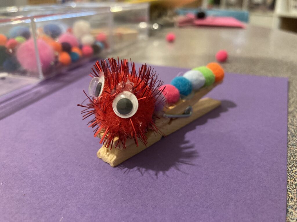Clothes pegs are so versatile and can be used for all kinds of things. Crafts made with pegs can often become something useful. Whether it be using as a bookmark or holding art work up in your room. These little caterpillar pegs are a cute little accessory that can be played with, but will also help children with their fine motor skills.