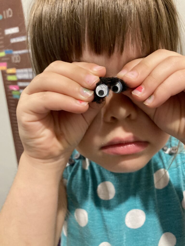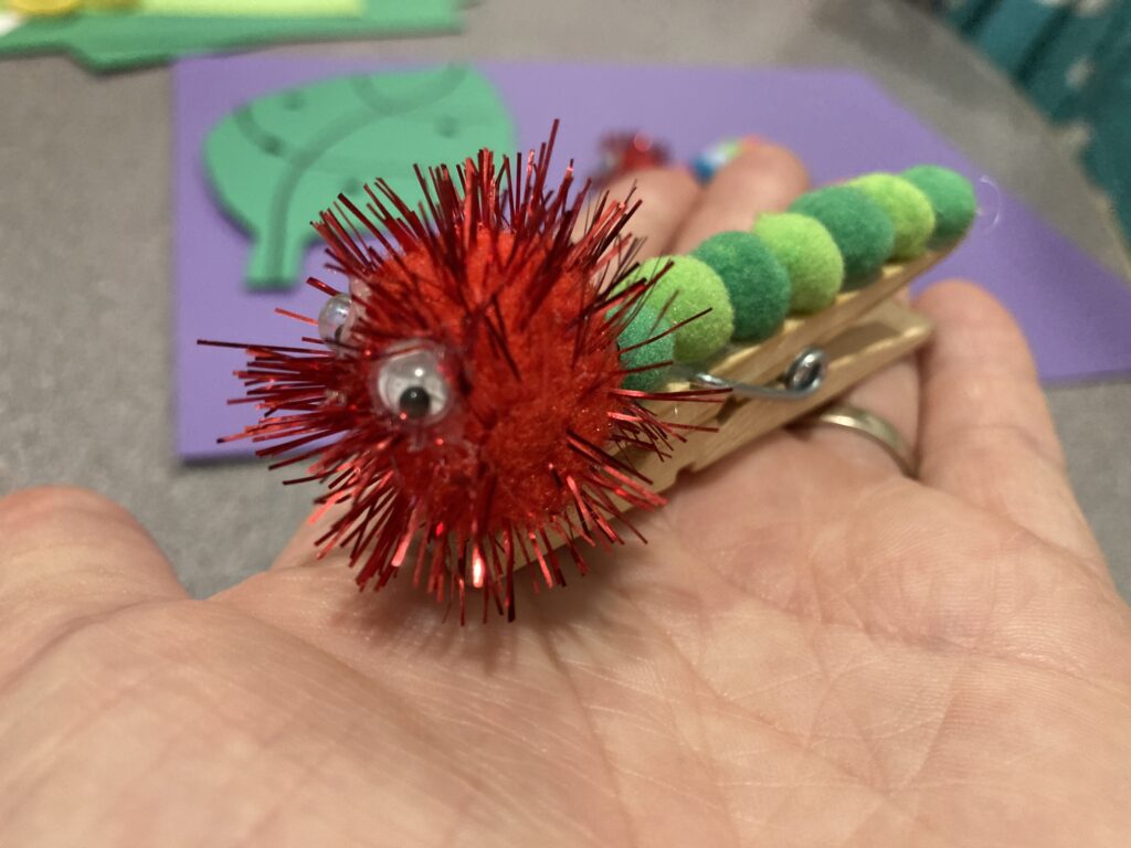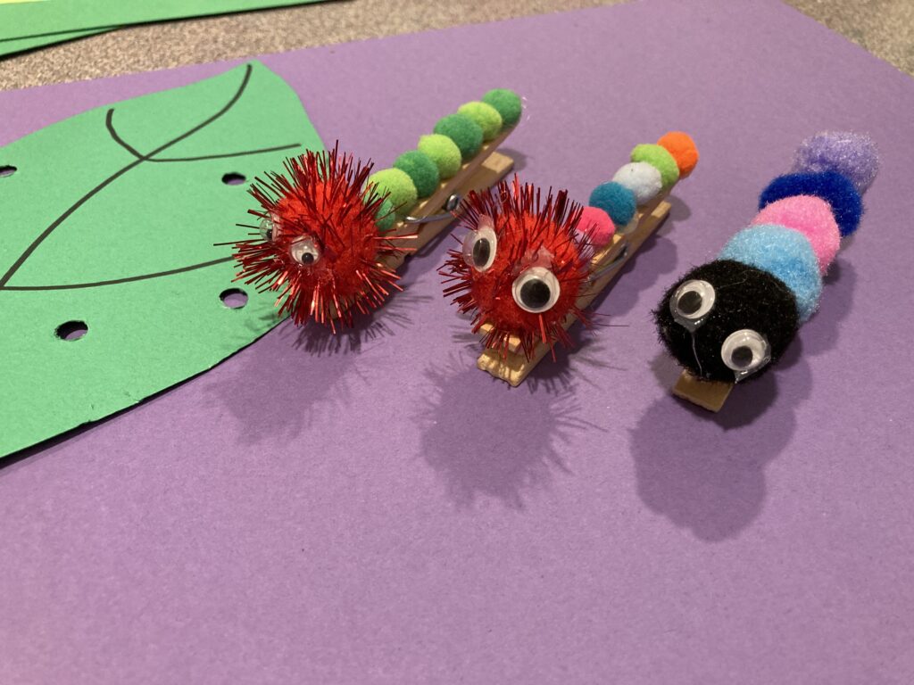 My daughter wanted to make a whole family of caterpillars for her leaf. You can make all different colours and can even use all larger Pom Poms if you’d rather.