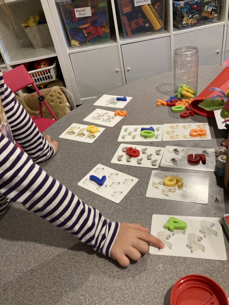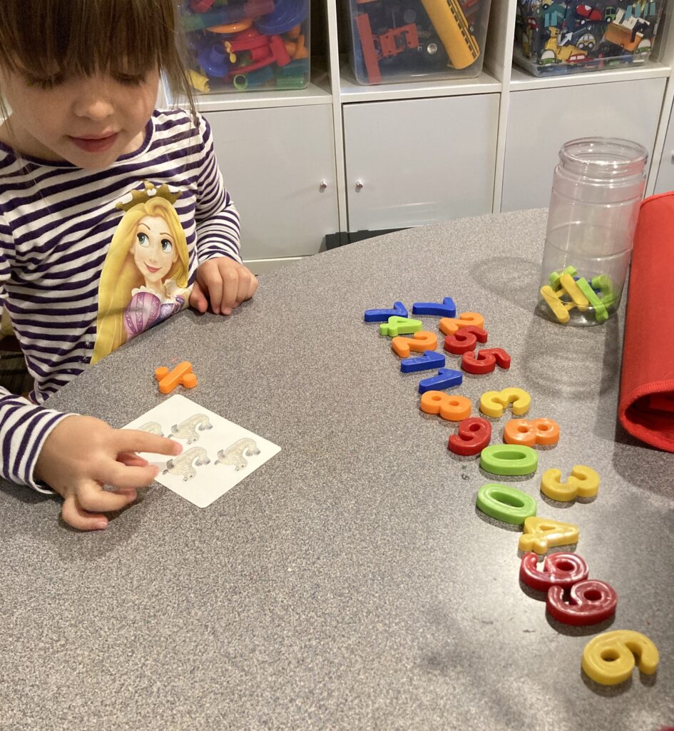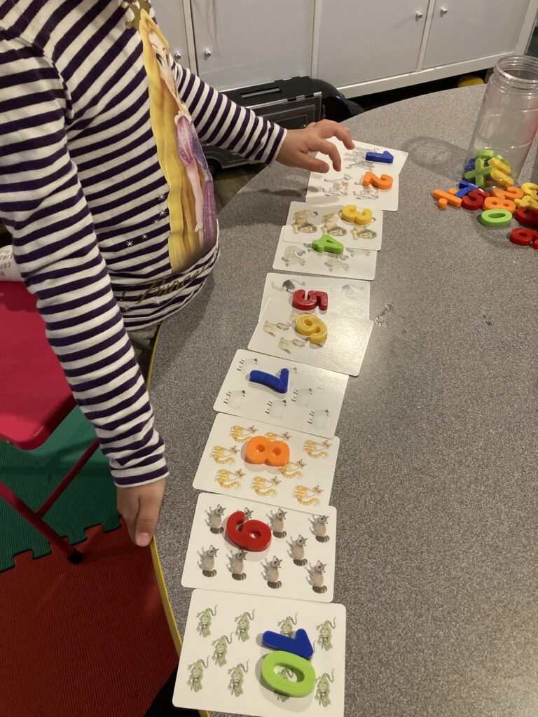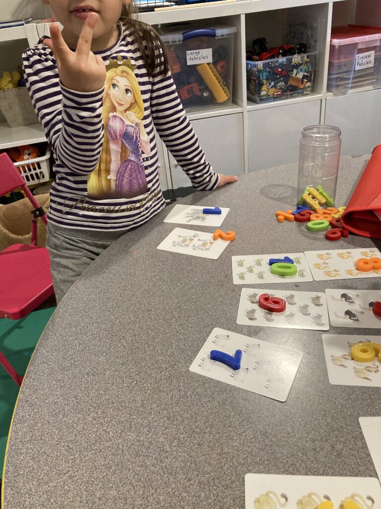 This was good practice not only for counting in sequence but also for her to see the numbers in the right order when counting.