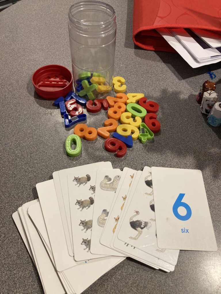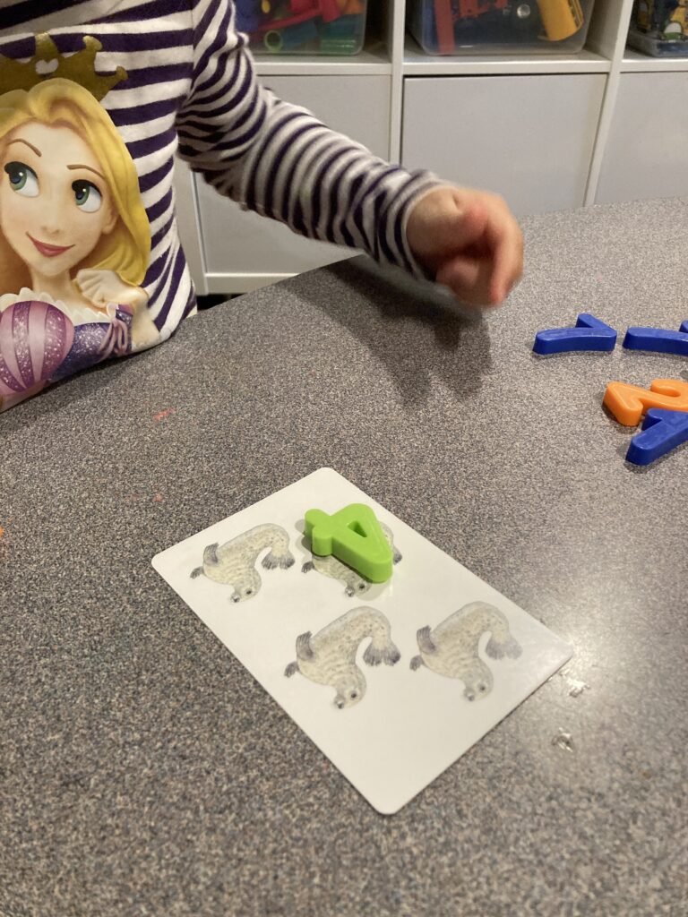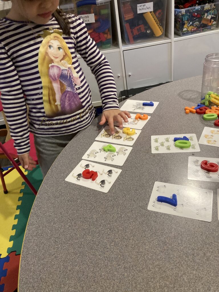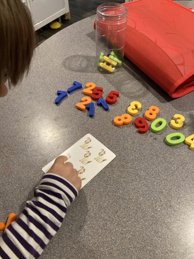 This was good practice not only for counting in sequence but also for her to see the numbers in the right order when counting.
