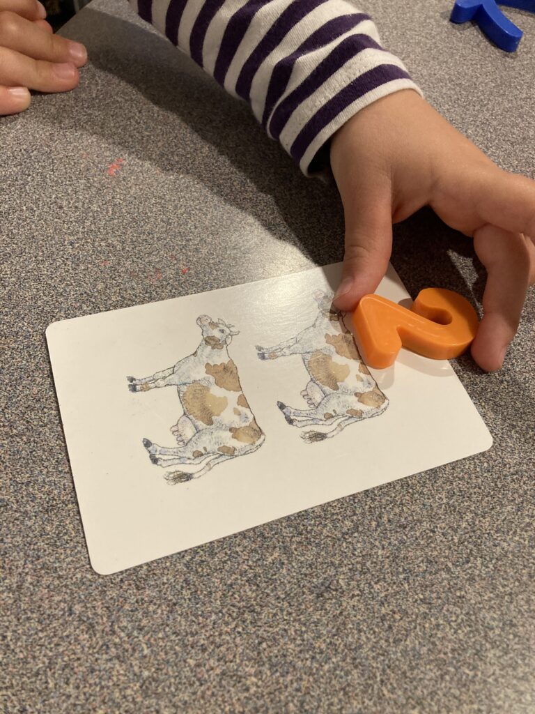 This activity is a simple number task, where kids have to count the animals and find the number to match. Sounds easy to us right? But even if your child can count to 10 with ease, recognizing numbers can be a whole new ball game.