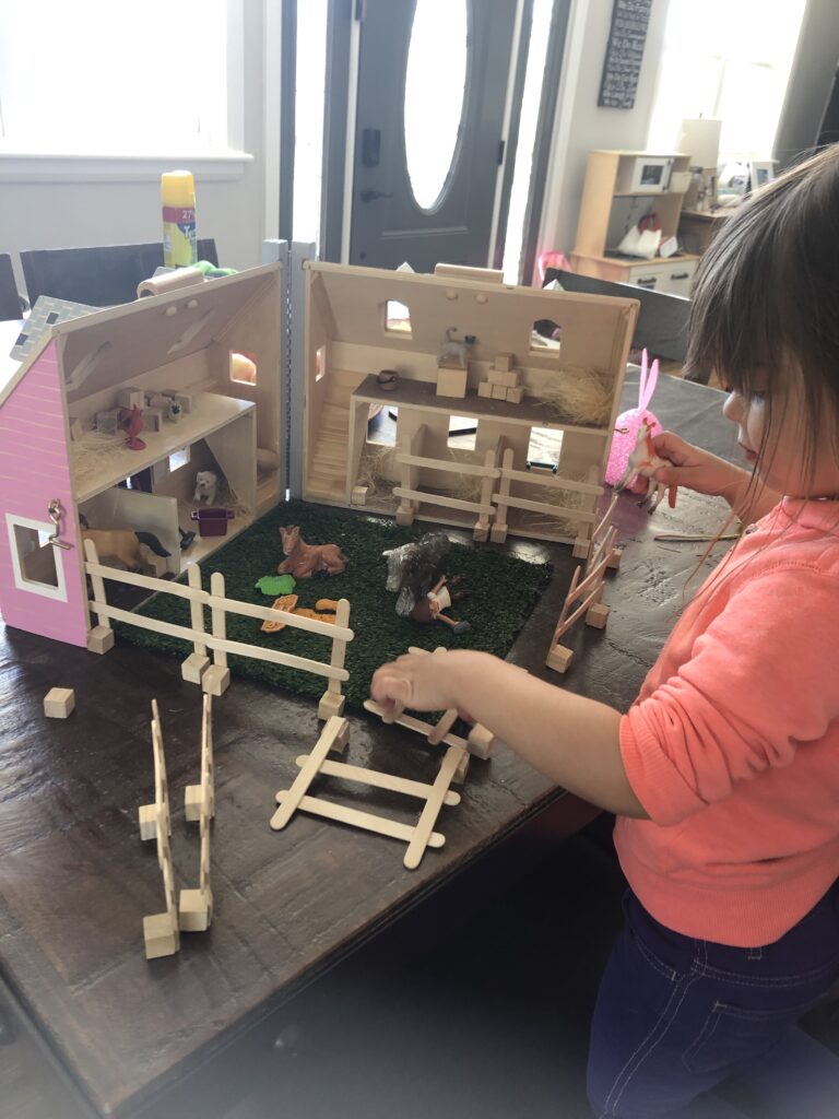 My daughter is obsessed with horses, Im sure she’s not the only little girl who is going through this phase lol! I always thought if I had a little girl she’d be playing with dolls more than anything else. Turns out when your the youngest girl and you have an older brother you tend to pretty much play with anything! Lately in our house though she’s into horses. Santa brought a whole bunch of horse stuff at Christmas but before that we hardly had anything other than a few horses from the thrift store.
