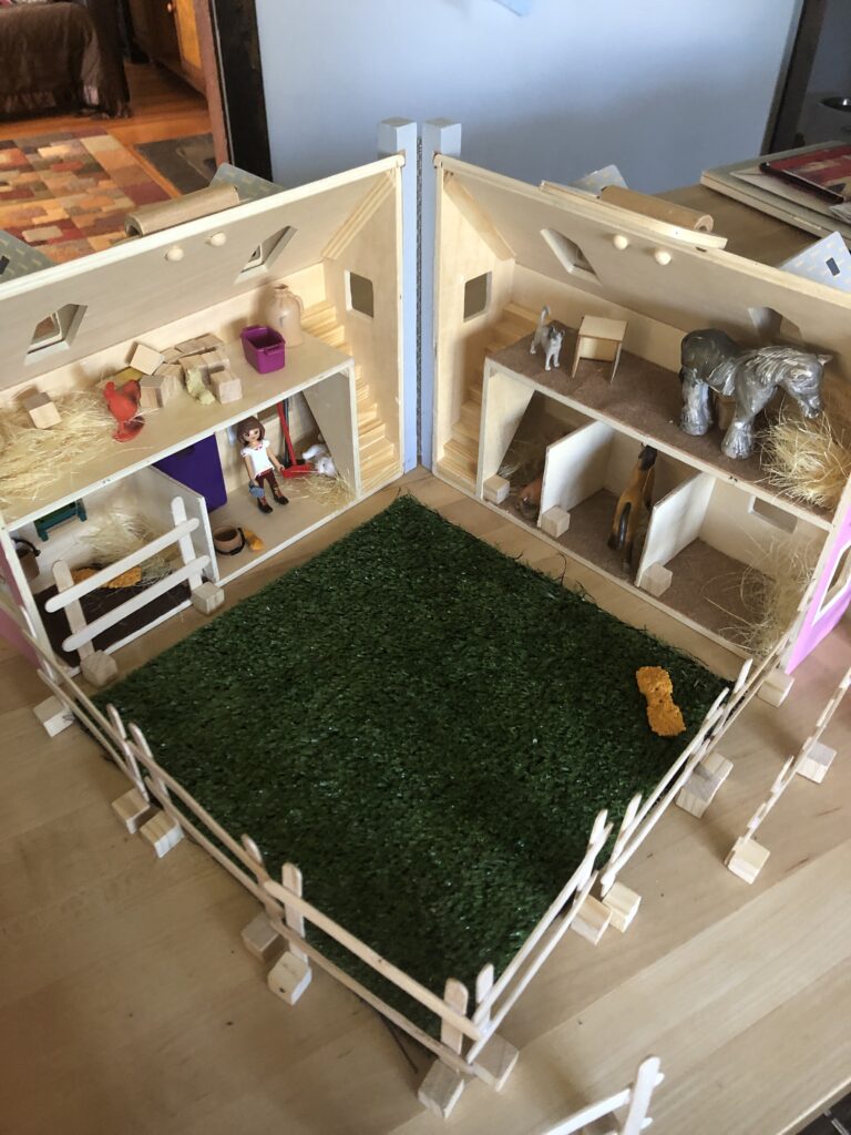 The best thing about this house/barn is that she can transport it around, so when we go to grandmas house we can pack some of her horses and take them with us.