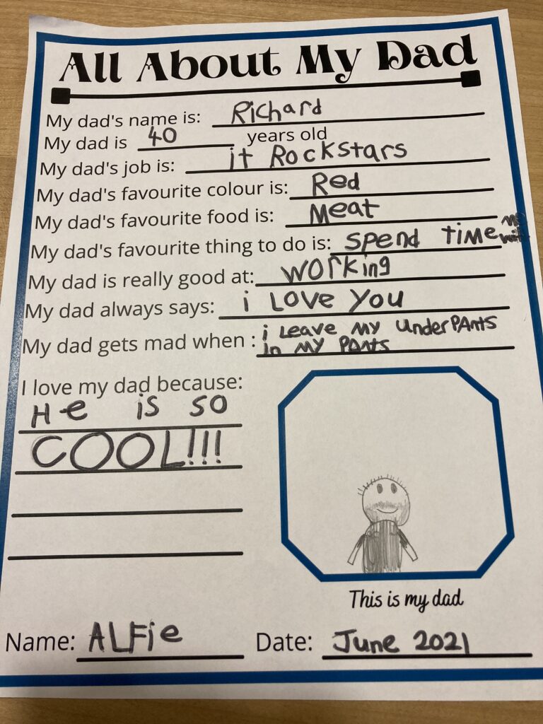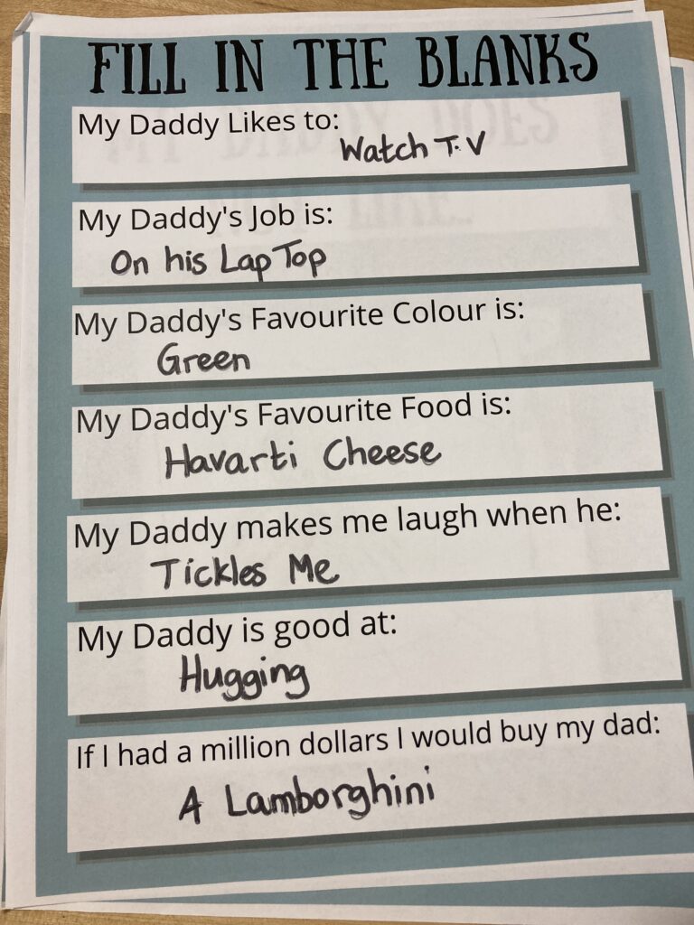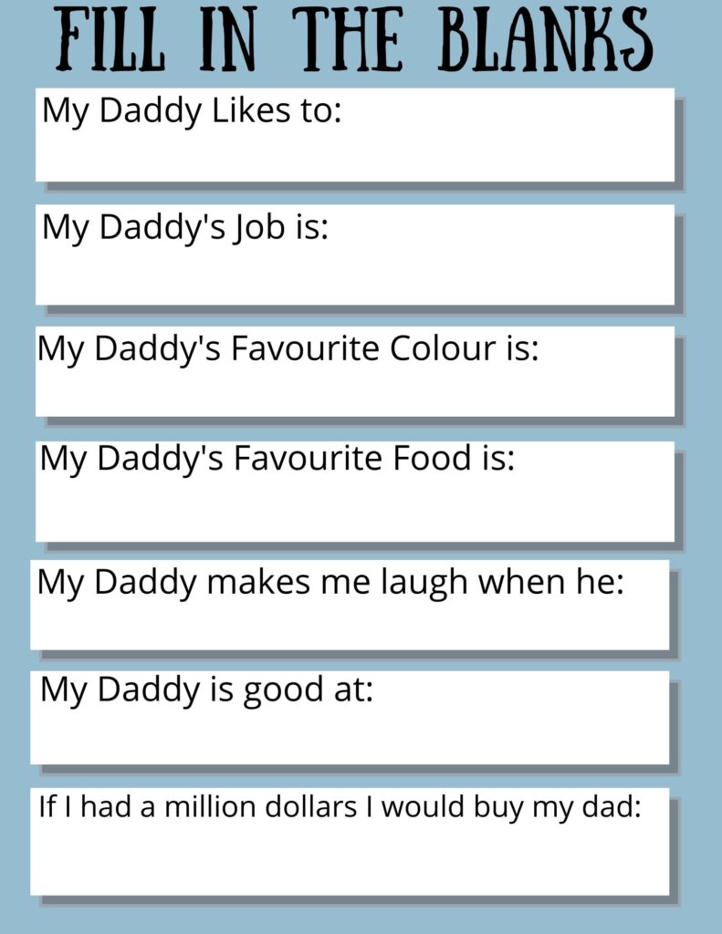 Then we have a second questionnaire which is good to accompany a card. It is brief but still cute for dads to read. For kids who are able to write by themselves, it is a good practising tool as well as giving dad something to smile about in the process.
