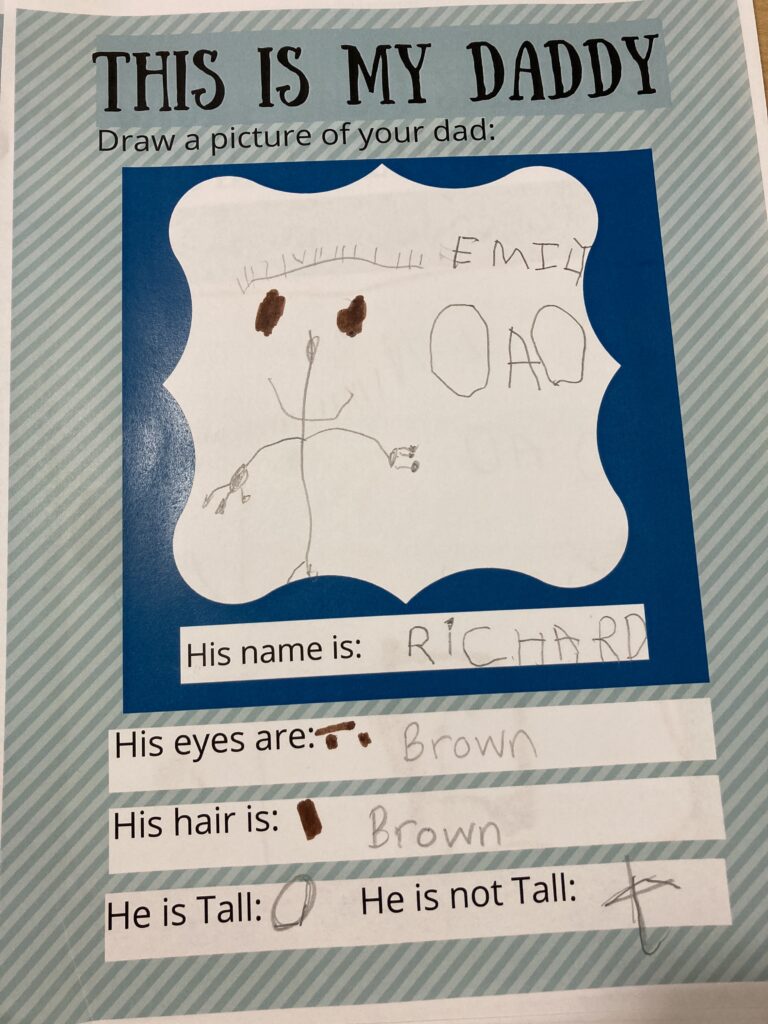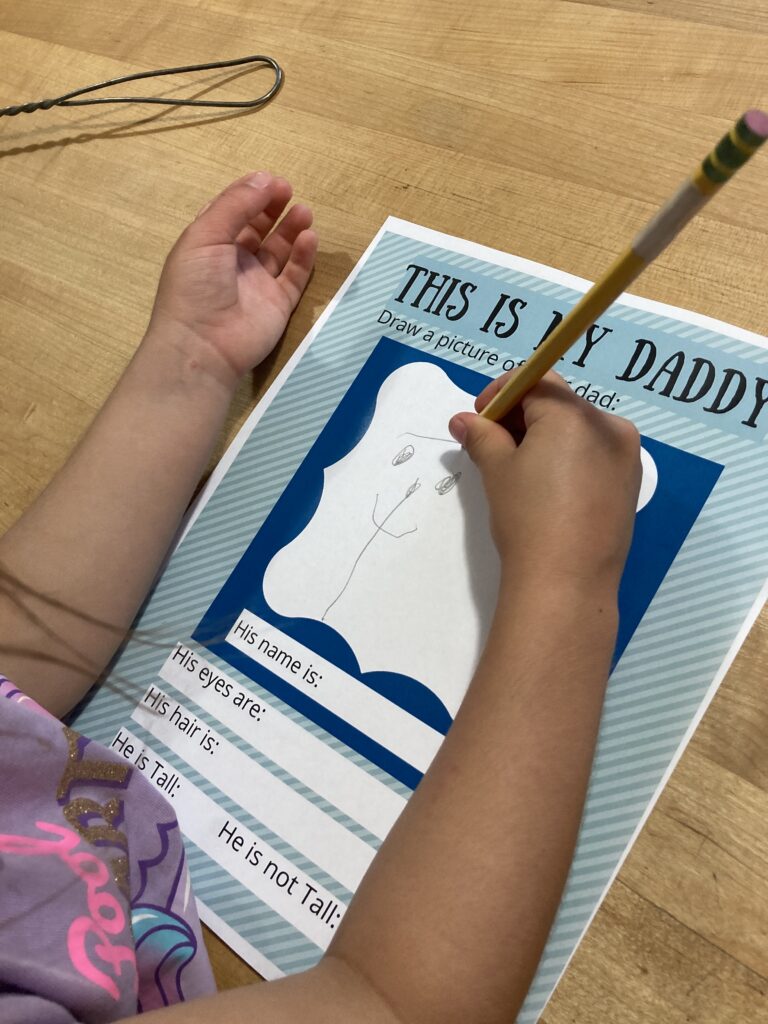 You can also use the framed part to glue a picture of daddy. But it is much cuter to have your child draw their dad in the space.