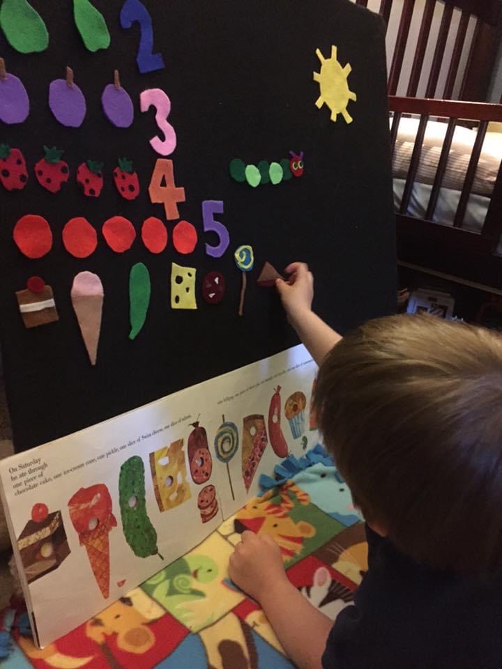 My absolute favourite however is our felt boards that we made. I saw something online that reminded me of the felt board that I had as a kid.
