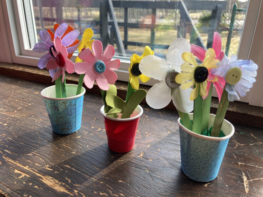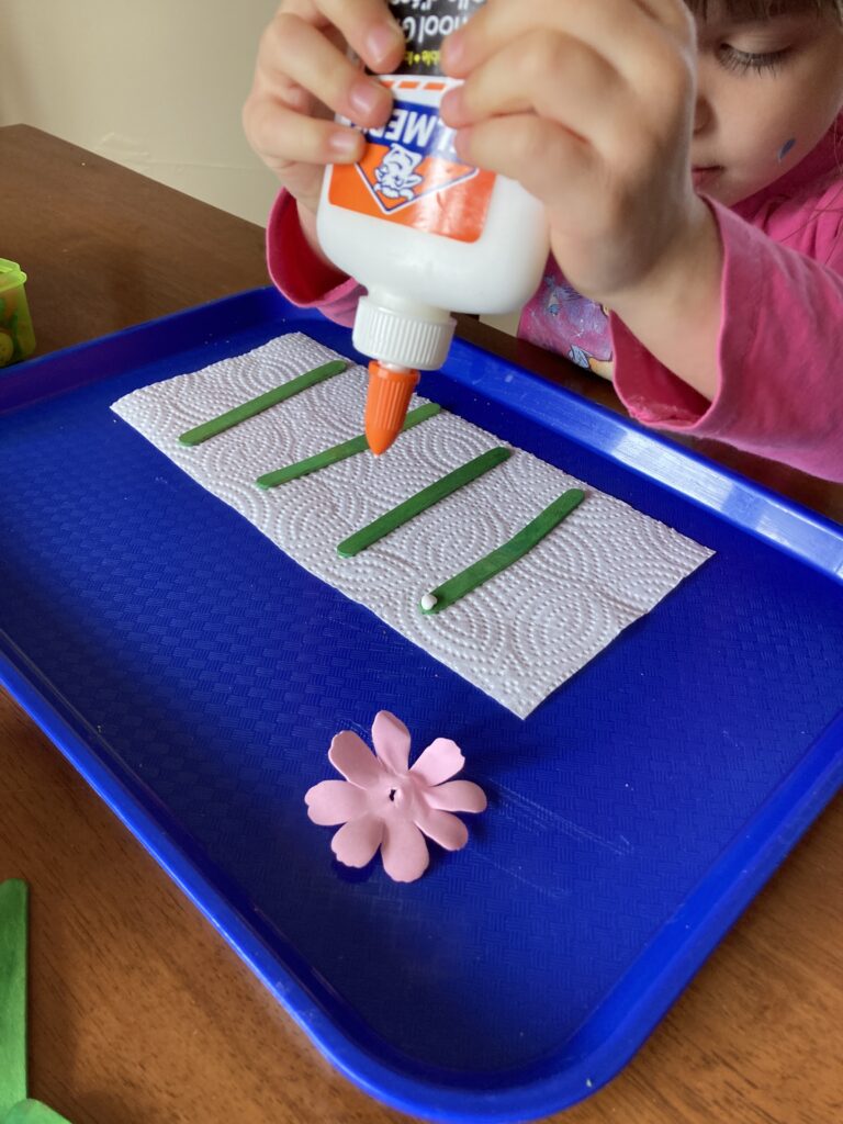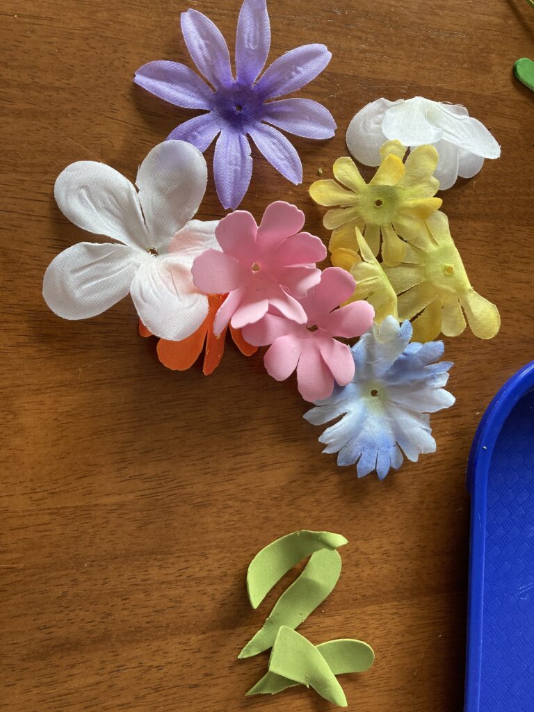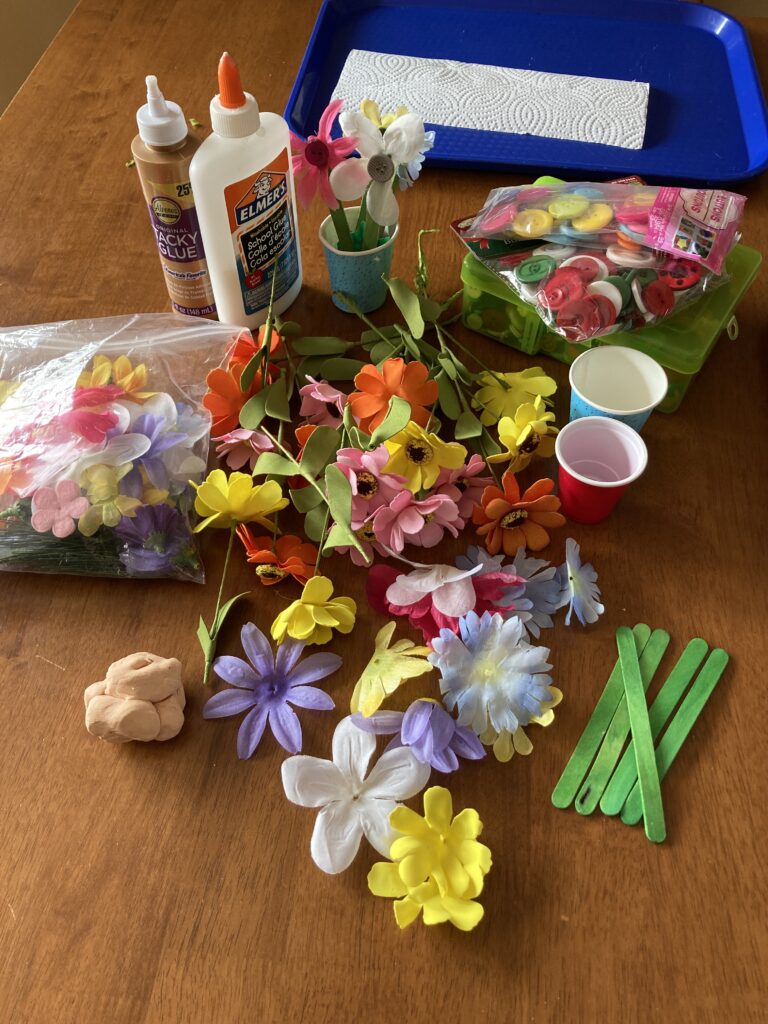 Have your child line up their craft sticks and pick out which colour petals they want for their flowers. They can have as many flowers as they want as long as their cup is big enough to fit them all lol!