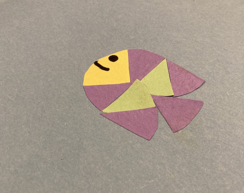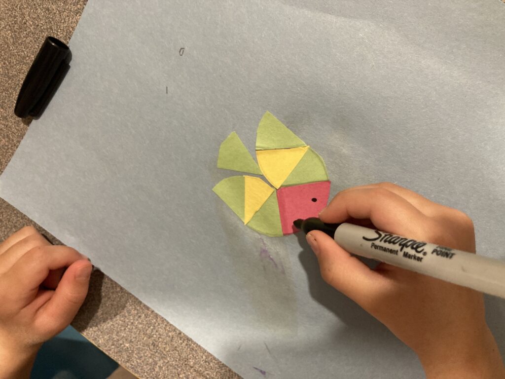 Next we started creating our fish using the different pieces. The bigger pieces were used more for heads of the fish. The smaller pieces were used for fins. The fish can be as big, long, or as small as you like. It’s all about connecting them so you have alternate colours.