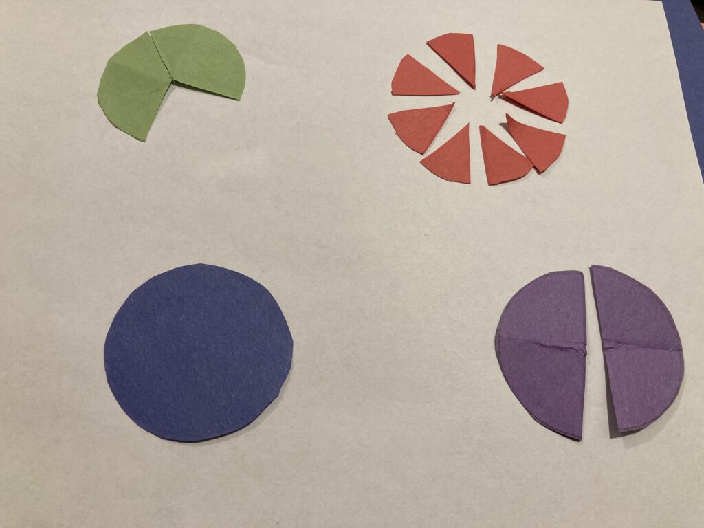 The idea of this craft was to teach the difference between halves, quarters, sixths and eighth and so on. The cutting part was a little tricky and time consuming but for older kids its a great learning tool.