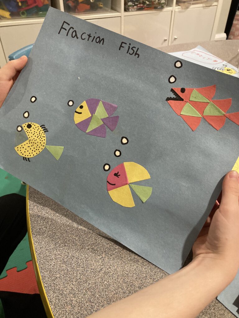 Fraction fish came from my son, who was shown it at school. I thought it was too good not to share with anyone who might be homeschooling. Such a simple and cute strategy for teaching fractions to kids.