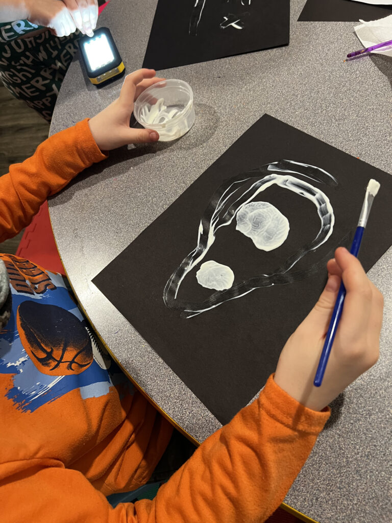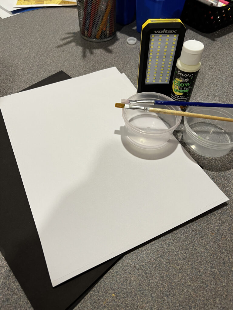 The glow in the dark paint will show up on black paper so the kids will see what they are painting.
