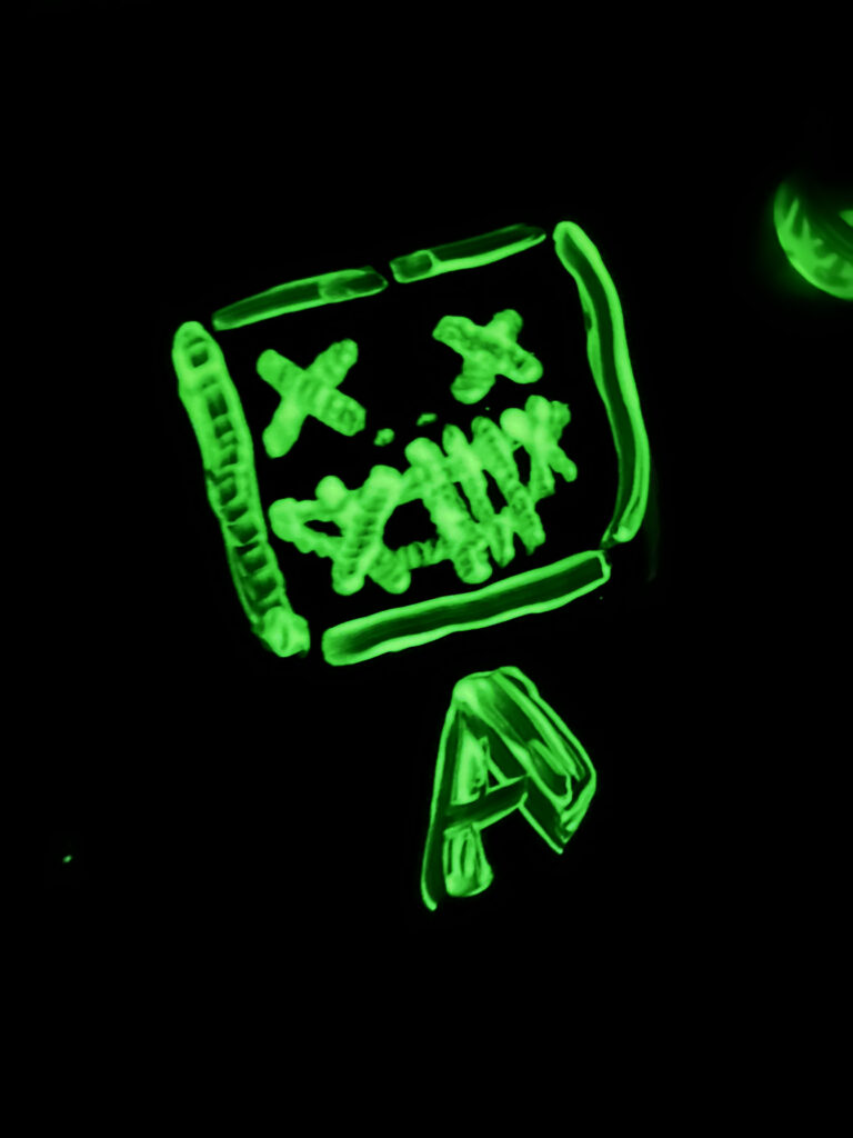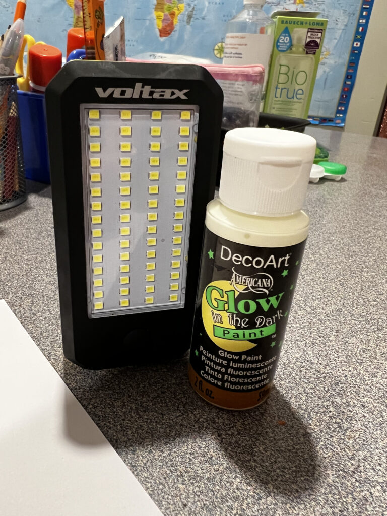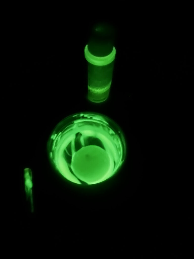 It was so cool to see spots of glow in the dark paint all over the table lol! Even the glue pot and bottle lit up!