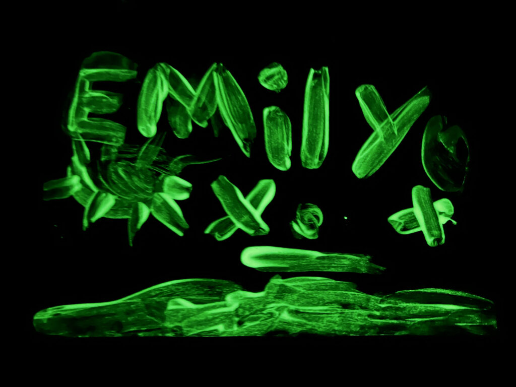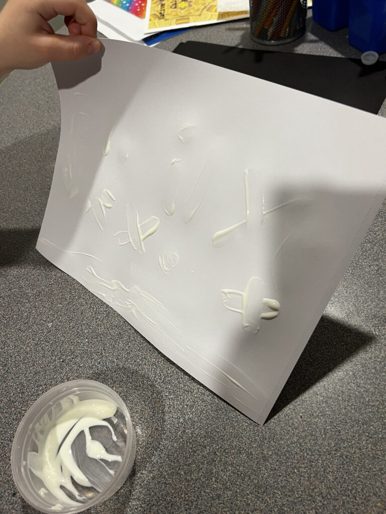I will mention that you don’t need a lot of paint to do your art, but making sure you cover your drawing or writing well is important. You will see why when you have shined your light onto it and see it in the dark.