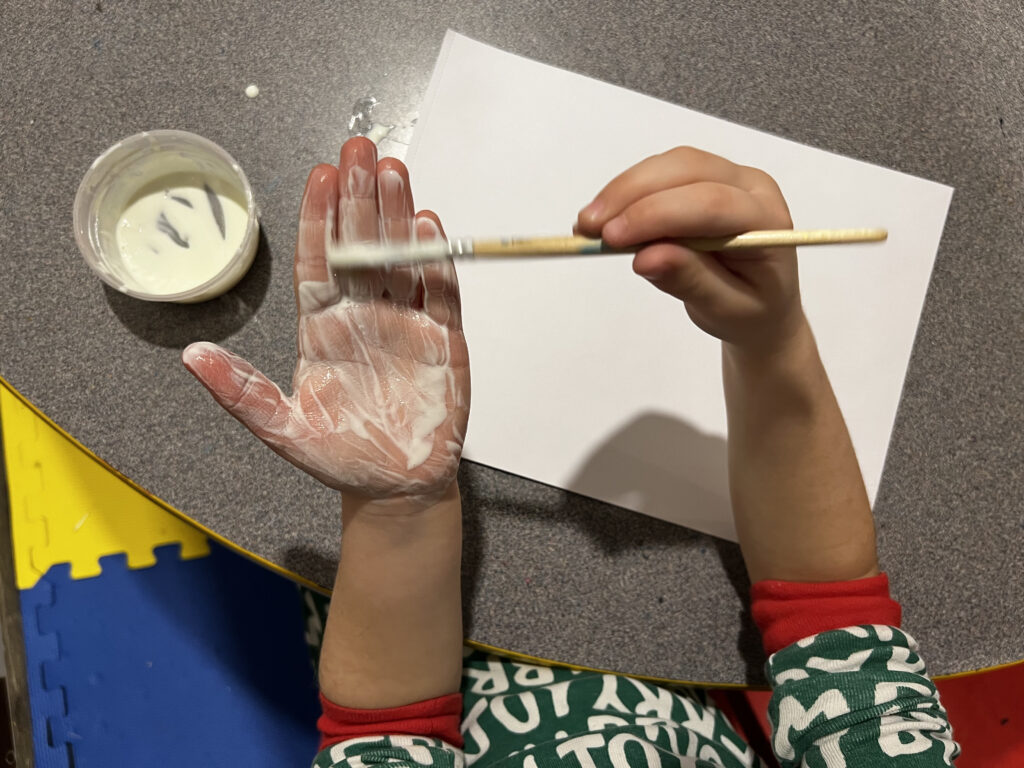 There are lots of ways you can do secret art. Whether you use white crayon, invisible markers or other art supplies. This glow in the dark paint works the same way, except you are using light to reveal your secret art. Its pretty cool for kids that enjoy sensory activities.