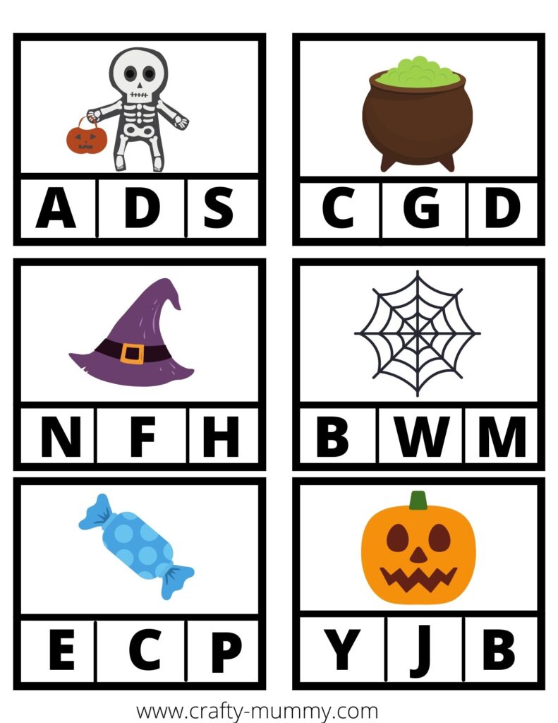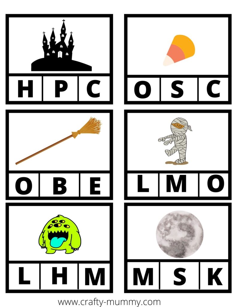 I had my daughter say the word and point to the letter she thought made that sound. She loved the pictures of all the halloween items and shouted out what they were! Pictures always make learning more fun for preschool children.