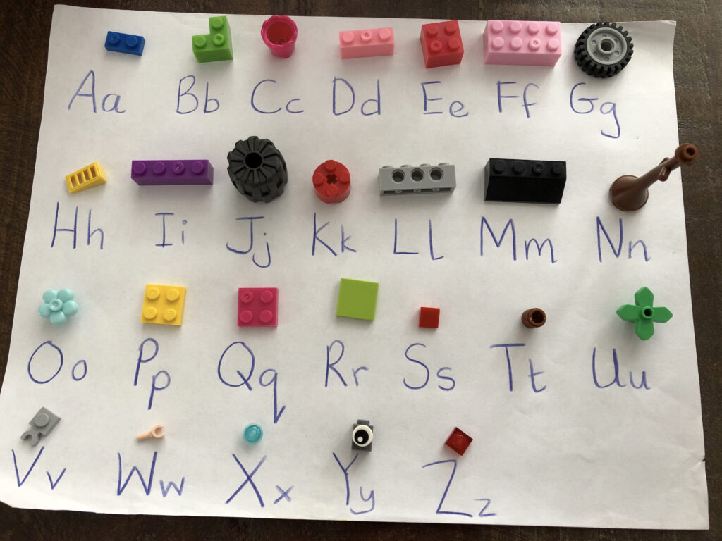 In preparation for your child to do lego coding, you have to assign lego pieces to a letter of the alphabet.