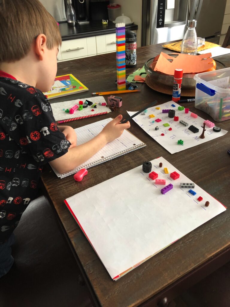 All you need for this activity is Lego, paper and pencils/markers. The great thing about this activity is the thinking that is involved. The downside is that it takes a little prep on the adult front.