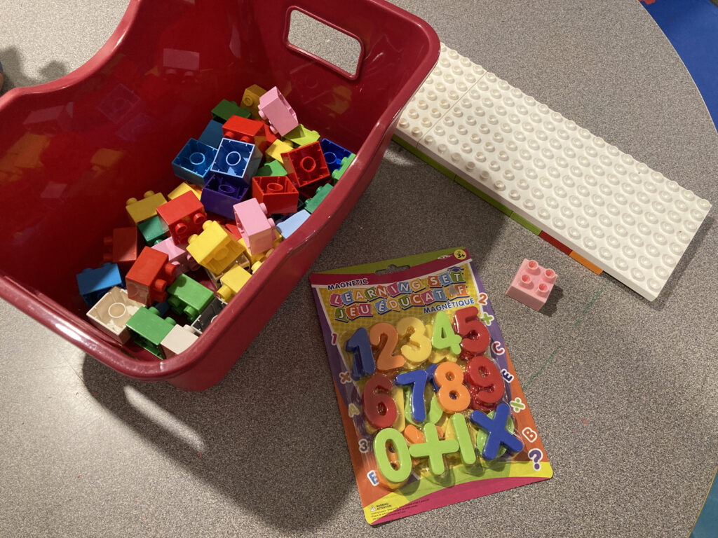 You can use whatever you have around the playroom to help with math. There are lots of different activities to teach math (which I am now learning more) 😆 This is just one of them!