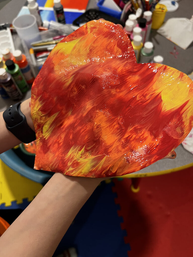 Each individual heart turned out very different as we all used different colours. My son went for a fiery red and orange heart, whilst my daughter picked out pinks and purples for her heart. We also tried a rainbow coloured heart.