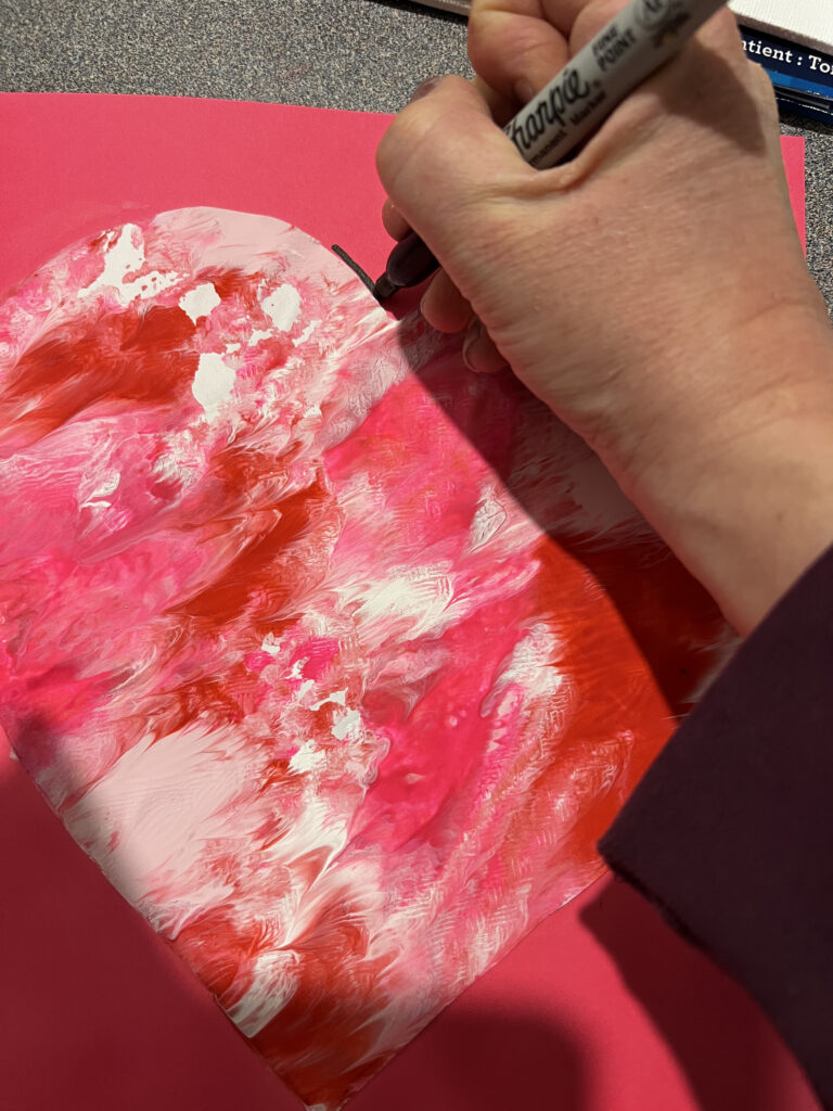 Before getting started with your marble art hearts, you will need a heart shape. Drawing your heart shape freehand is one option. However if you aren’t great at drawing them, we have a FREE printable download below that will make your life a little easier lol.