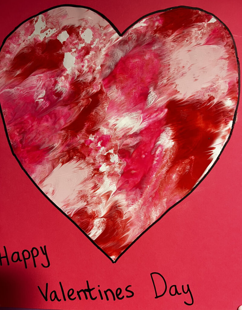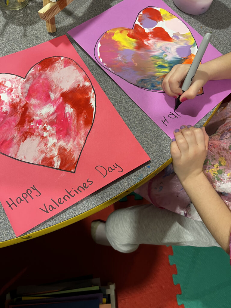 Our Valentine marble art hearts turned out so vibrant and pretty. An easy craft to do which kids will enjoy doing any time of year. You can also just use a regular sheet of paper if you don’t want to do hearts.