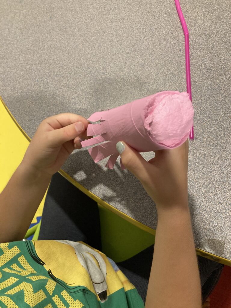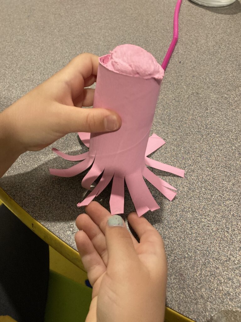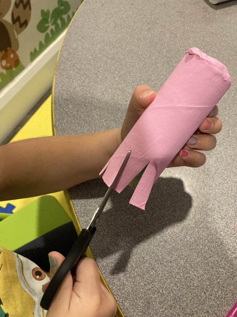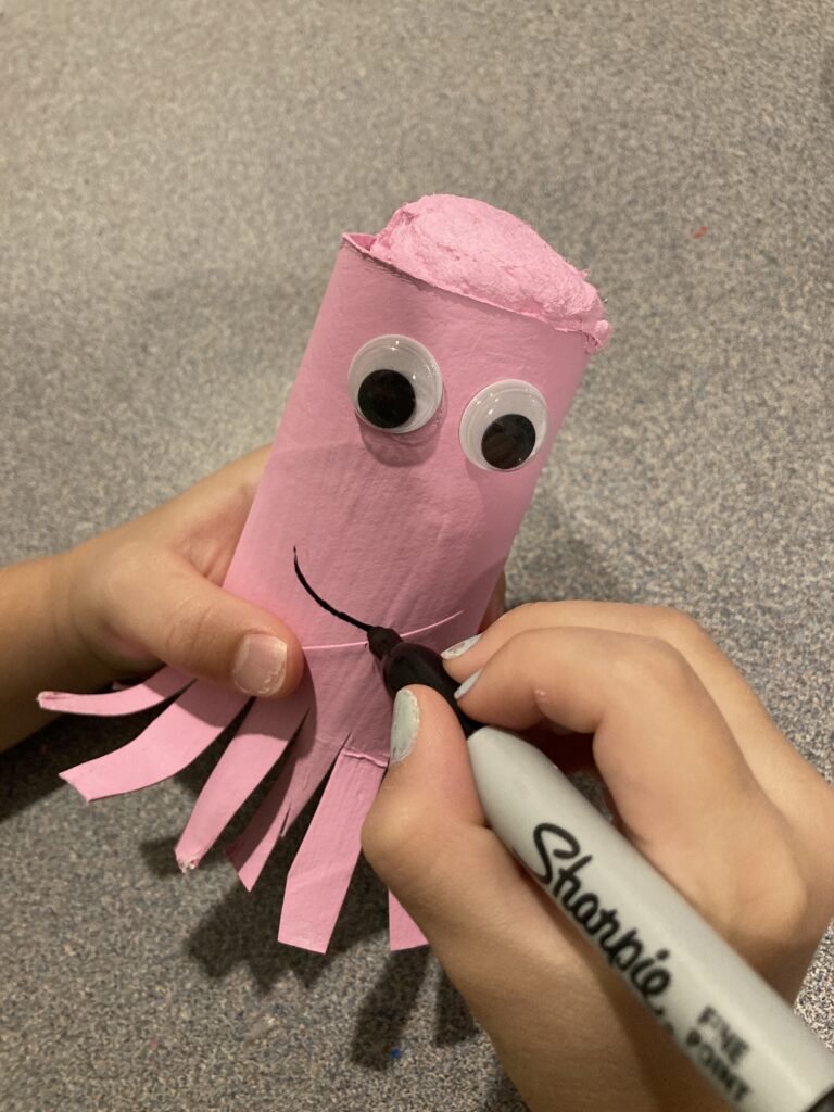 Once your tube is dry, you can start to make it into your octopus. Depending on the age of the child they may need help with the next step but most pre-schoolers should be able to do it with guidance.