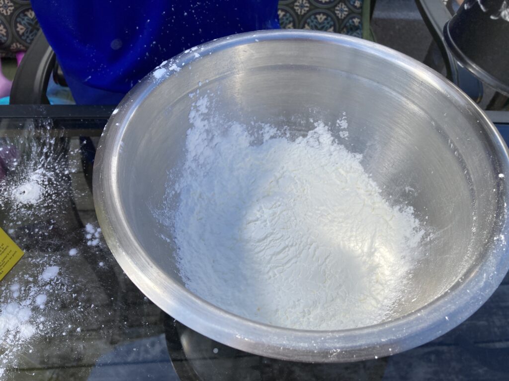 When the water and corn starch are mixed together, you will see it looks very runny. Almost like it is too wet!