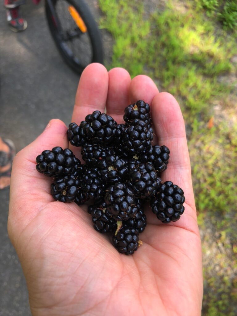 Of course for hygiene reasons, always make sure you have hand sanitizer on hand when children are touching things outdoors. And always be aware of what they might put in their mouths. We find berries sometimes on our walks.