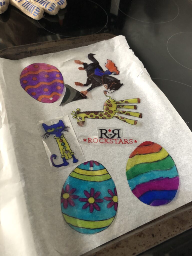 Shrinky Dinks are a great activity and give art an edge. These can be purchased at craft stores. We got a pack of 3 in our local discount store.