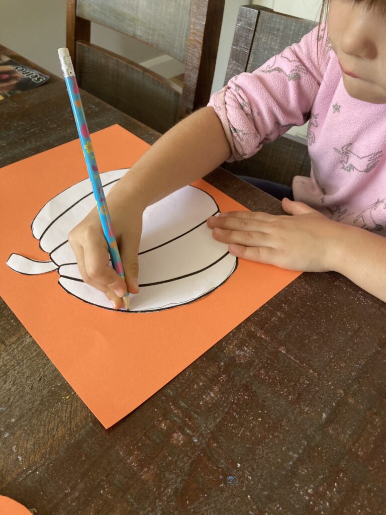 Of course you don’t need to use our template for your pumpkins. We have had larger paper to work with before. So the kids would draw a large circle and cut that out to make a bigger pumpkin. The template is just for your convenience. 😉