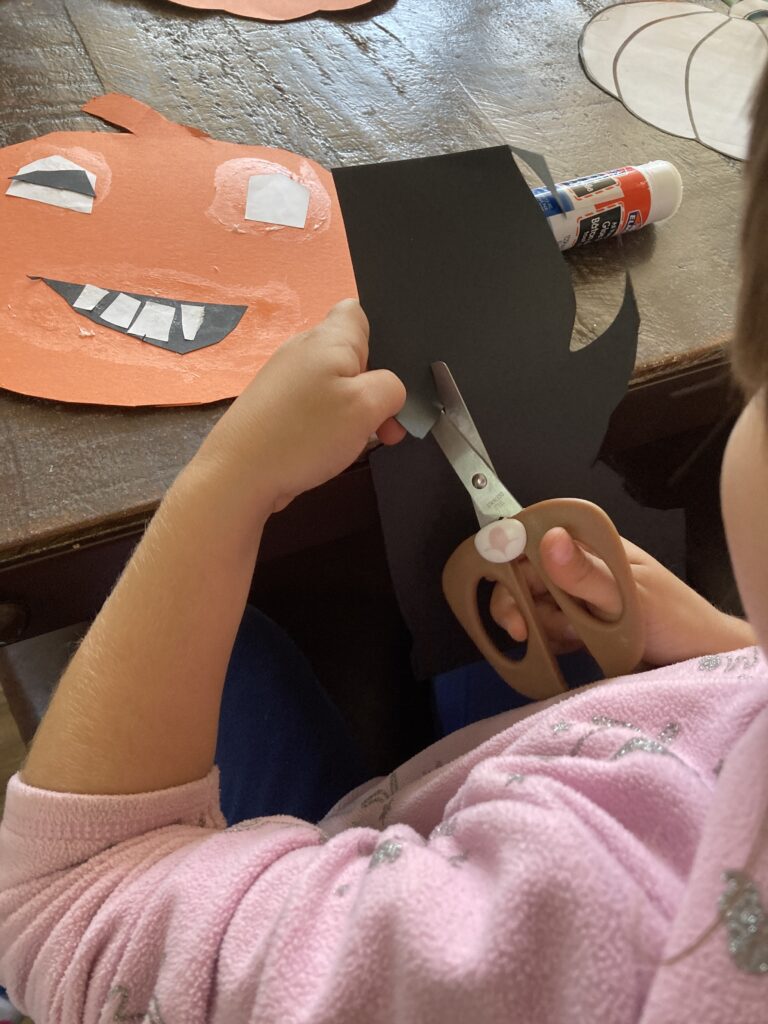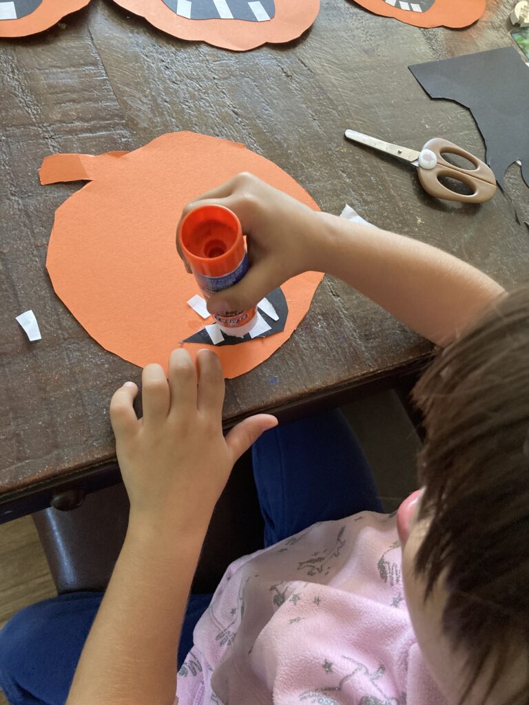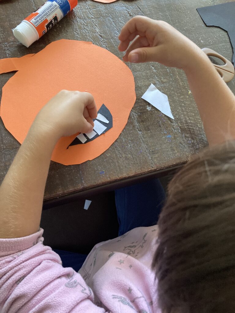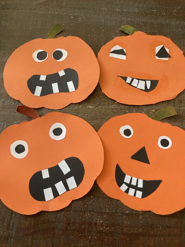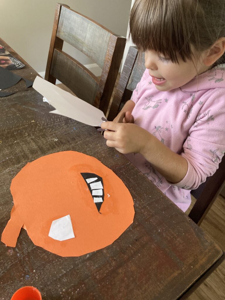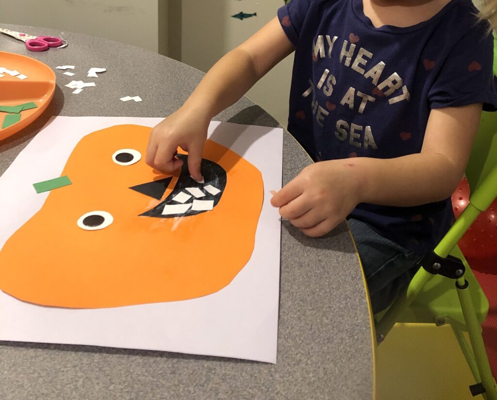 These smiley pumpkins can have all kinds of extra details if your child wants to get more creative. You can cut out a triangle and give it a nose. The eyes can also be a different shape. You can give them markers and have them draw on rosy cheeks. Basically their smiley pumpkin can be however they want it to be. It’s all about getting creative!