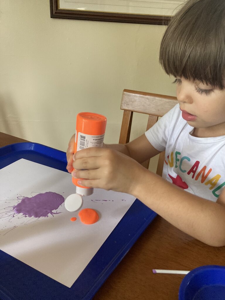 To do your splatter monsters make sure you have your surfaces protected. This can get a bit messy! But mess is good right lol! And the more paint you use, the messier this can get! Just a warning for you 😉