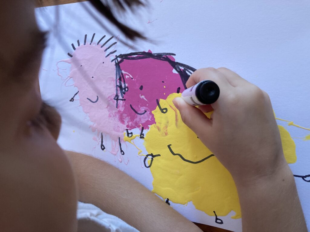 Once your paint splatters are dry, you can add details to them. Things like arms, legs, hairstyles, eyes, mouths. And this is when you’re monsters really start to come to life.