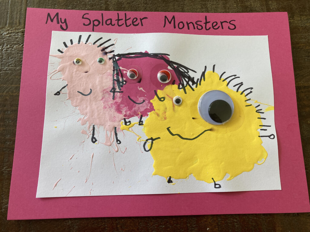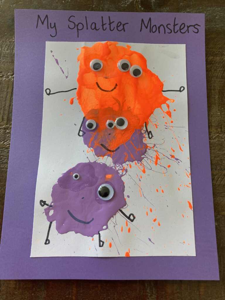 You can mount your splatter monsters onto coloured card. And because they are all so individual the monsters make a great display for halloween time!