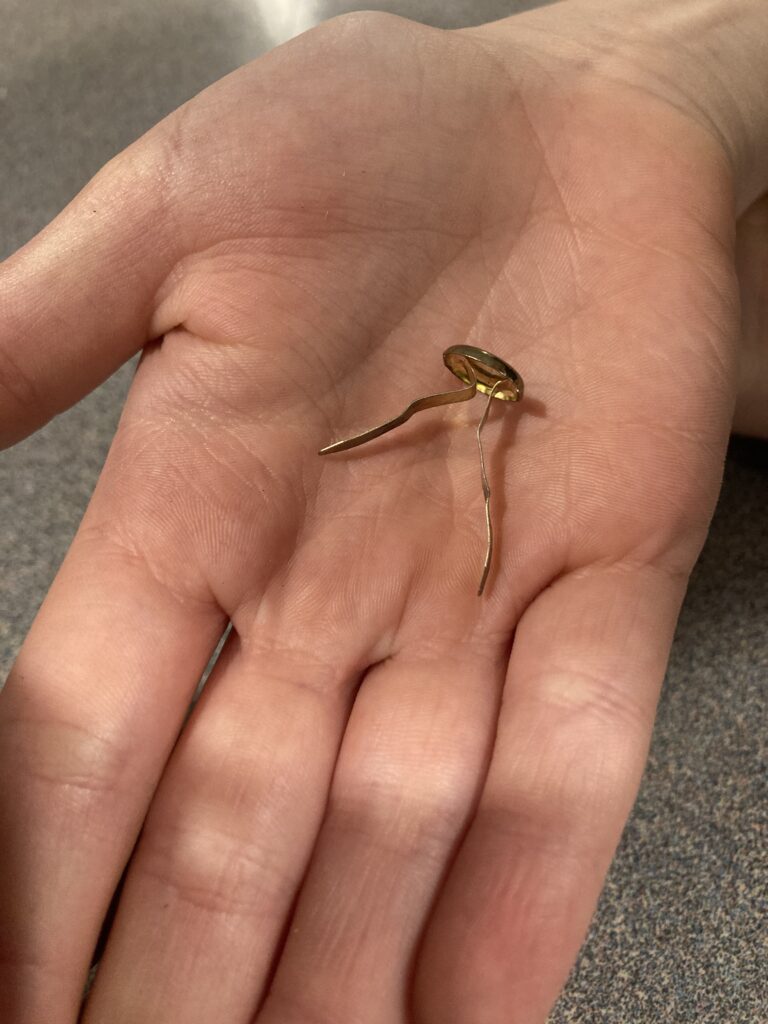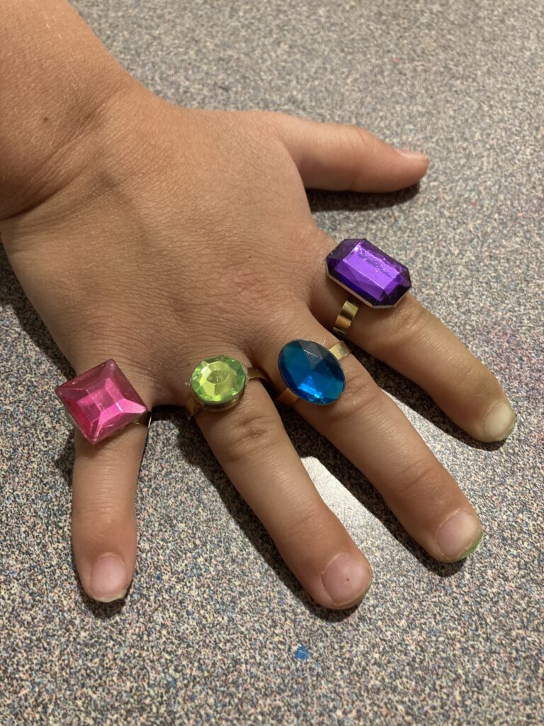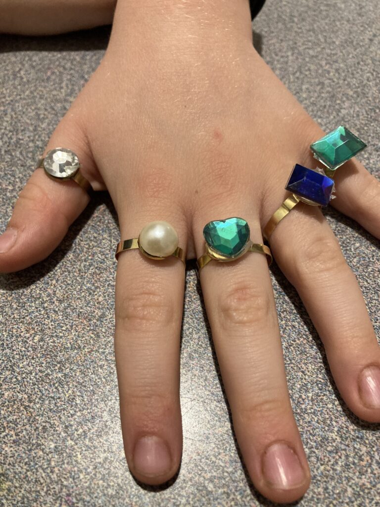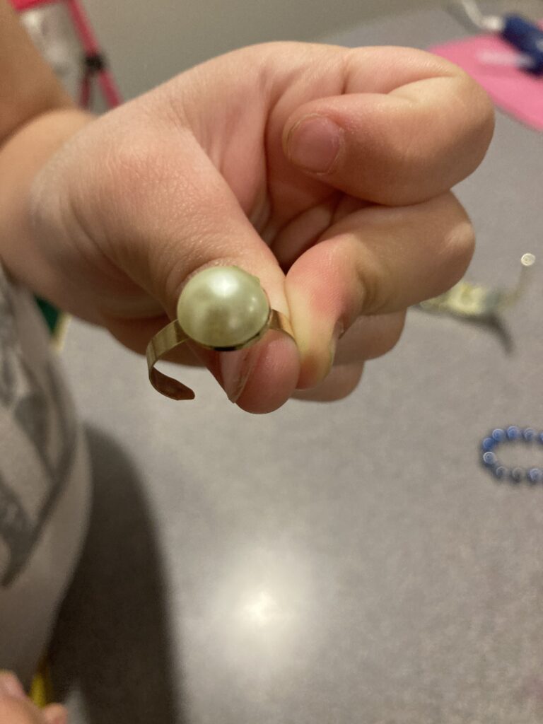 Who doesn’t love making home made jewellery with their kids? My son came up with a genius idea using one little stationary item that we had in our craft drawer. Brads create a cool little ring. They are actually quite a handy little tool when it comes to school projects too but that’s for another day. 😉