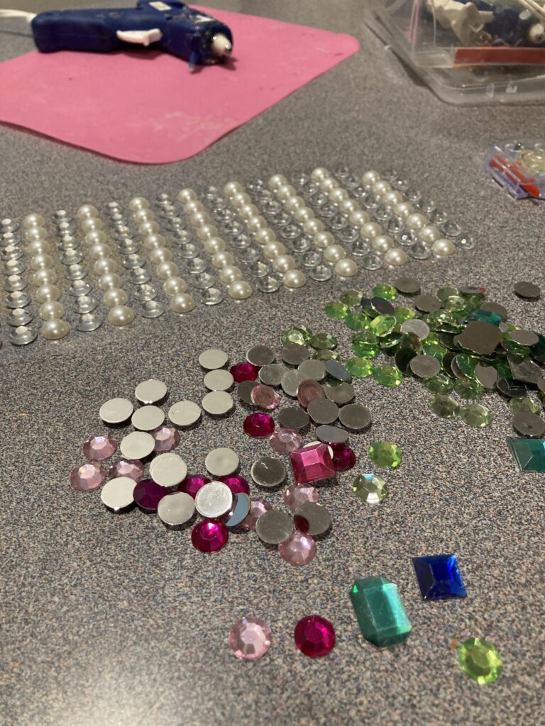 The coloured gems that we had , needed to be applied with glue. This takes a little supervision but my oldest who is almost 10 was able to help make these for his sister.