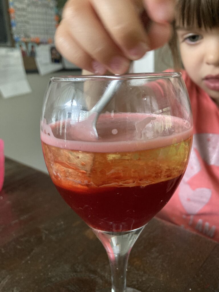 My daughter wanted to see what would happen if you stirred it once the bubbles had settled.